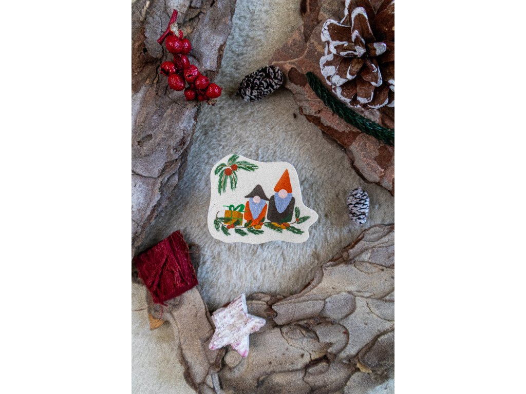 Ručně vyrobená samolepka s autorským vánočním motivem od návrhu až po zabalení.