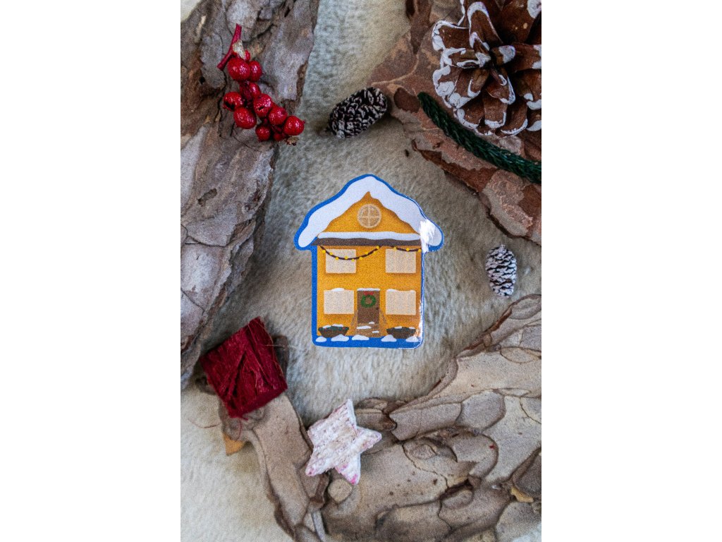 Ručně vyrobená samolepka s autorským vánočním motivem od návrhu až po zabalení.